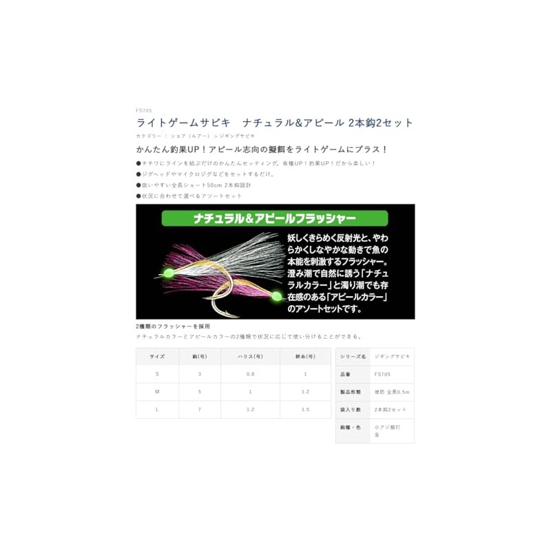 Hayabusa FS705 Light Game Sabiki Natural & Appeal, Set of 2 Hooks, L