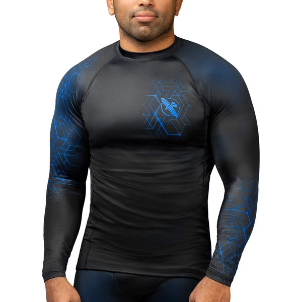 Hayabusa Geo Long Sleeve Jiu Jitsu Rashguard - Blue, XXL