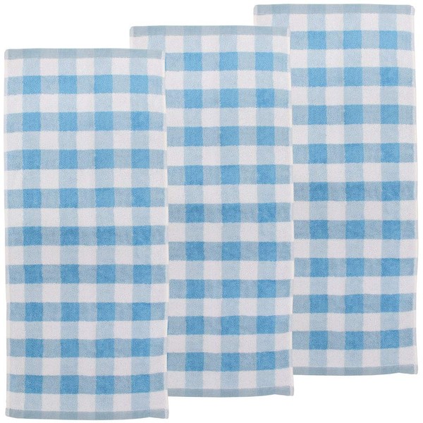 Hayashi FI7003-3P01 Face Towels, Set of 3, Approx. 13.4 x 31.5 inches (34 x 80 cm), Aegean Cotton, Bay Checker, Blue