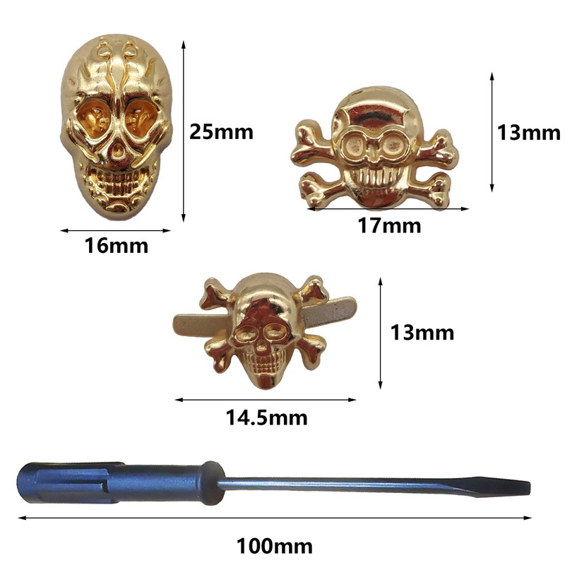 - [Package Content] Includes 10 punk skull ghost rivets and 1 screwdriver, the rivets are available in different styles and colors, with rich colors and styles to meet your basic needs