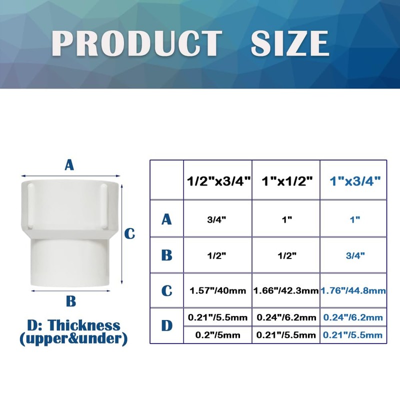 - 😊Product specification: These PVC coupling fittings are made of high-density PVC material, not only wear-resistant and corrosion-resistant, but also lighter than steel, with female threads on both ends for connecting two straight pipes of different diameter