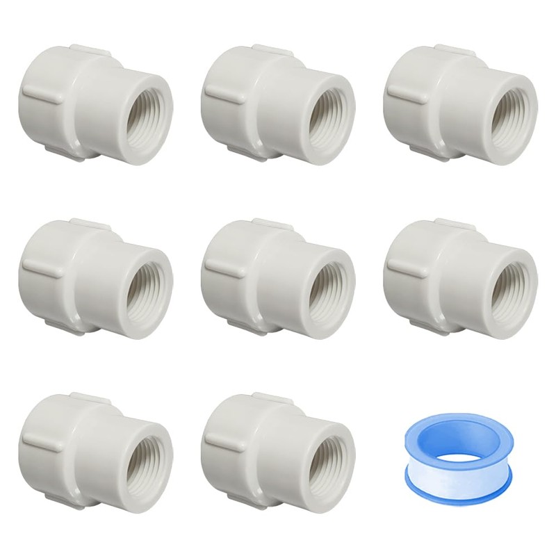 - 😊Package contains: 8pcs white PVC female x female threads coupling of different sizes and 1pc 3meters sealing tape to meet your replacement needs