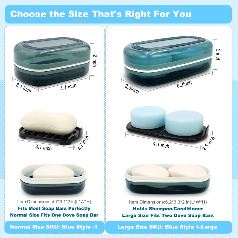 HAYSNA Travel Soap Container, Bar Soap Holder, Portable Soap Case, Soap Dish with Lid for Traveling, Camping, Gym, Bathroom (Blue Style-1)