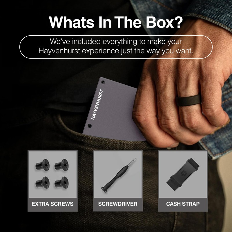 Hayvenhurst Wallet For Men - Reinvented Design Men's Wallet - Slim, Minimalistic & Seamless, Blocks RFID Scanners with a Cash Strap (Gunmetal)