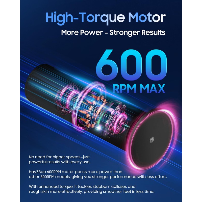 - Adjustable Speed: Customize your callus removal with adjustable speeds (0-600 RPM) for safe and effective exfoliation.Helps users find the most comfortable and effective setting,enhancing the overall experience and making the foot care process more enjoyable.