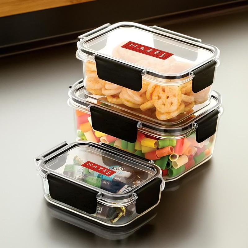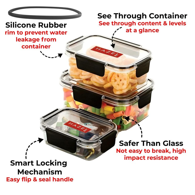 HAZEL Plastic Rectangle Airtight Leak Proof Microwave Safe Container Dabba, Set of 3