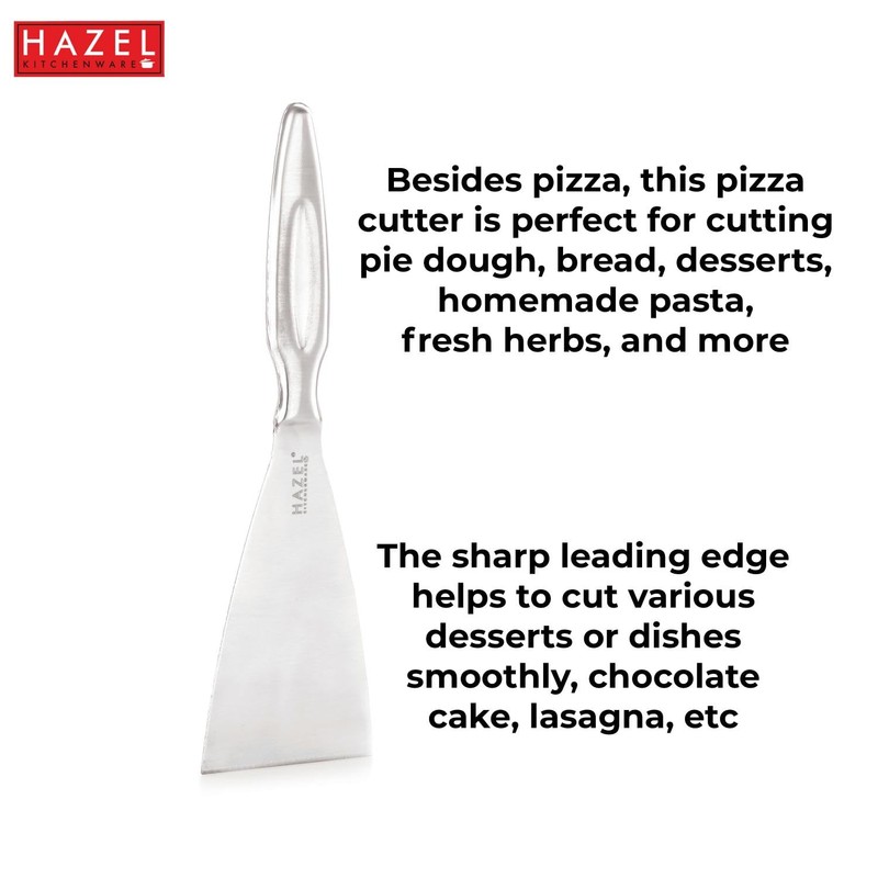 HAZEL Stainless Steel Pizza Cutter with Handle | Spatula with with Beveled Edge