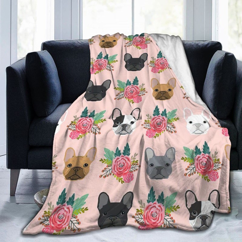 HAZIMCS Flannel Fleece Plush Throw Blanket,French Bulldog Floral Dog Cute pet Gifts Dog Breed Throw for Spring Recliner, Air Conditioning Blanket Quality Washable 50"x40"
