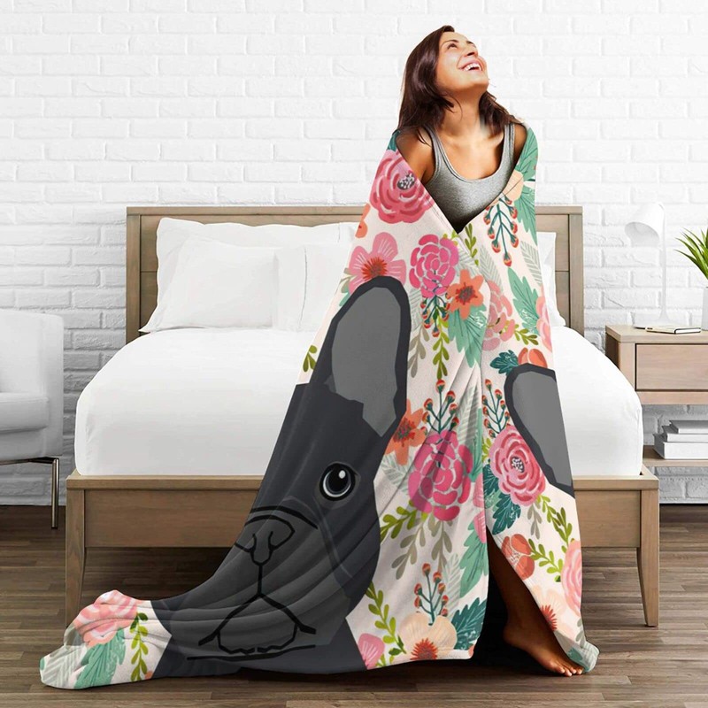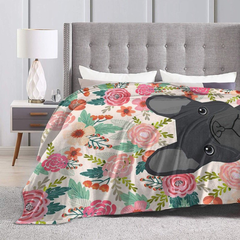 HAZIMCS Flannel Fleece Plush Throw Blanket,French Bulldog Floral Dog Head Cute pet Gifts Dog Breed Throw for Spring Recliner, Air Conditioning Blanket Quality Washable 80"x60"