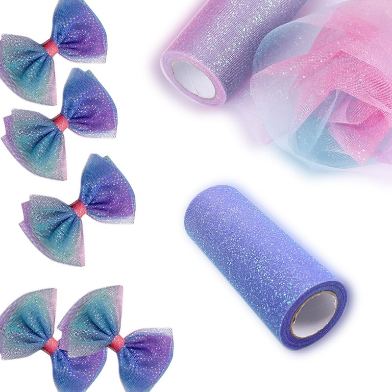 - Beautiful Design The tulle rolls are coated with a large amount of glitter to make the tulle sparkle, and the design is a mix of colors to create a gradient effect.