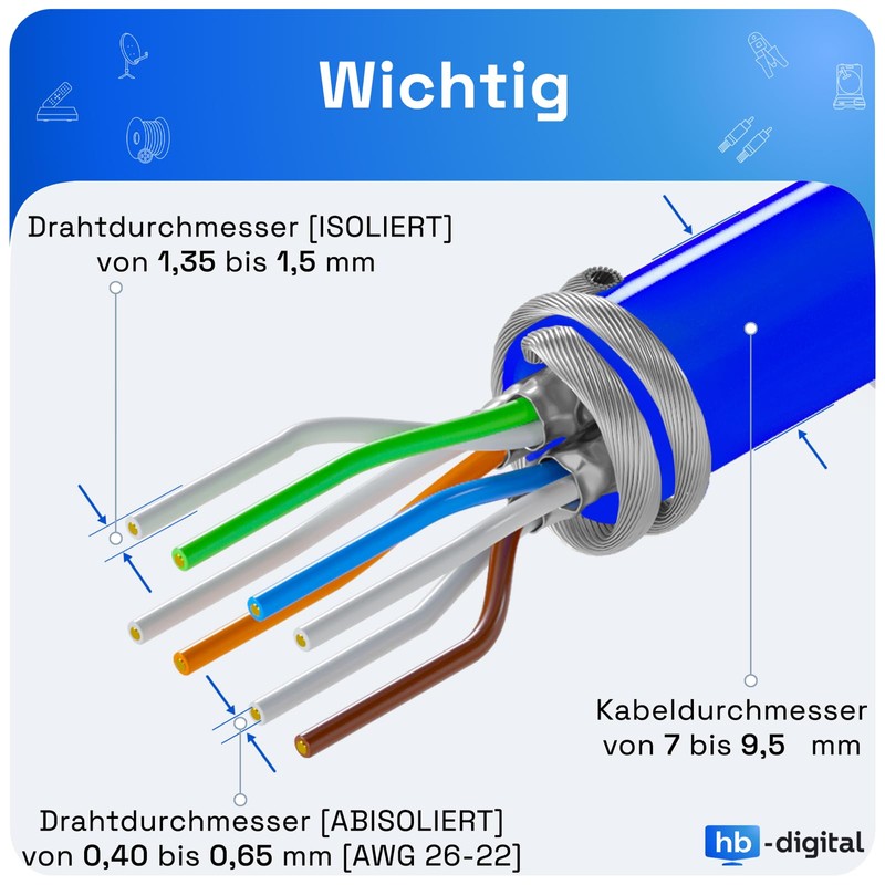 It is also compatible with the network cables of the previous categories such as CAT 7a, CAT 7, CAT 6a, CAT 6 and CAT 5e with T568A, T568B connection standarte. AWG 22 to AWG 26, solid and stranded conductors network cable standards are allowed.
