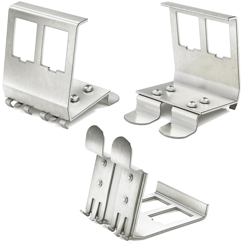 • The 2-port set of stainless steel DIN rail adapter and two CAT.7 keystone modules ensures optimal network security for commercial applications thanks to standard-compliant 14×16 mm front dimensions, robust metal bracket and sturdy connecting elements.