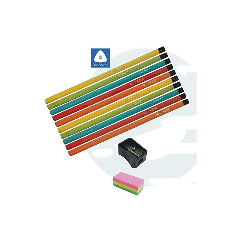 HB Triangular Pencils Write Draw Sketch Shade School Office Home Nursery College (10 Pencils + 1 Erasers + 1 Sharpener)