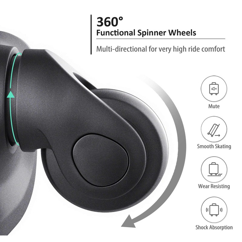 - [360° Spinner Wheels] Each luggage is fitted with quad smooth-glide base 360 degree swivel spinner wheels for easy transportation through terminals, on concrete, cobblestone and more