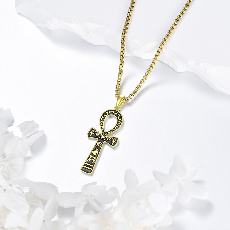 - ❤Ankh Necklace❤ This necklace combines the timeless symbol of the Ankh with a striking black and gold contrast. The embossed Greek runes add an element of mystery and depth, making this piece not only visually appealing, but also rich in cultural significance.