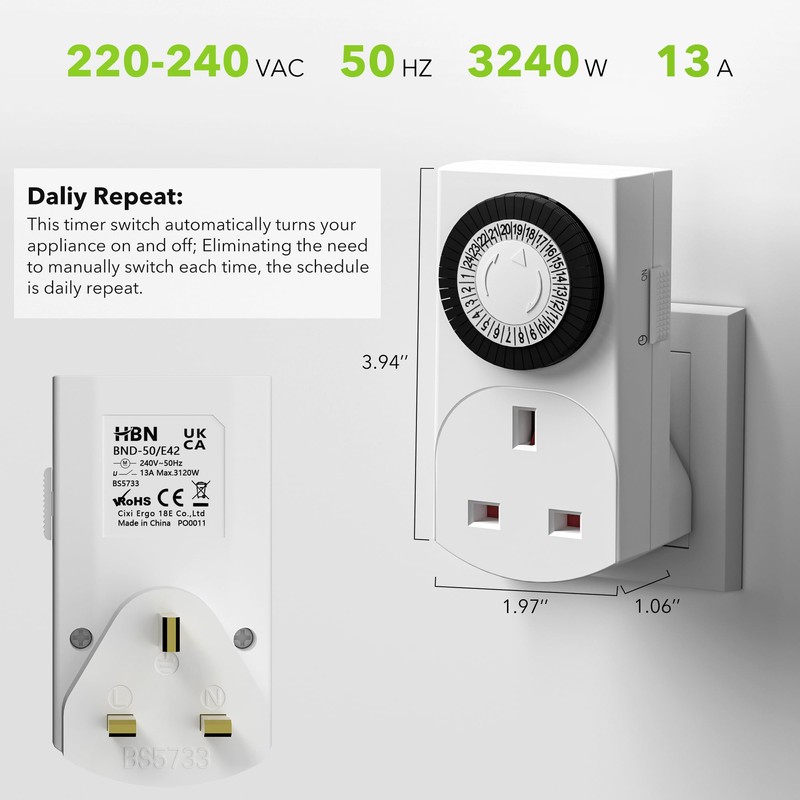 • Multi Purpose - This timer switch can be used with lights and appliances up to 3120W. Great for controlling household appliances such as TV, fans, humidifiers. Can set time for phone charging, lighting system include desk lamp, bed side lamp, floor lamp, Christmas light etc