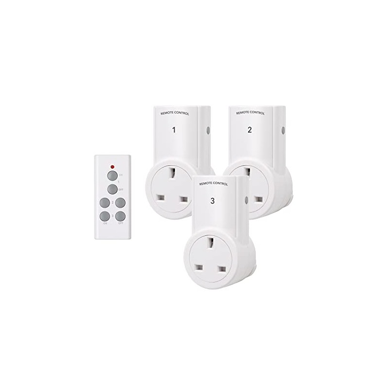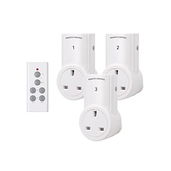 HBN Remote Control Plug Socket,13A/3120W Wireless Light Switch 30M/100ft Operating Range for Household Appliances,3 Pack Sockets and 1 Remote