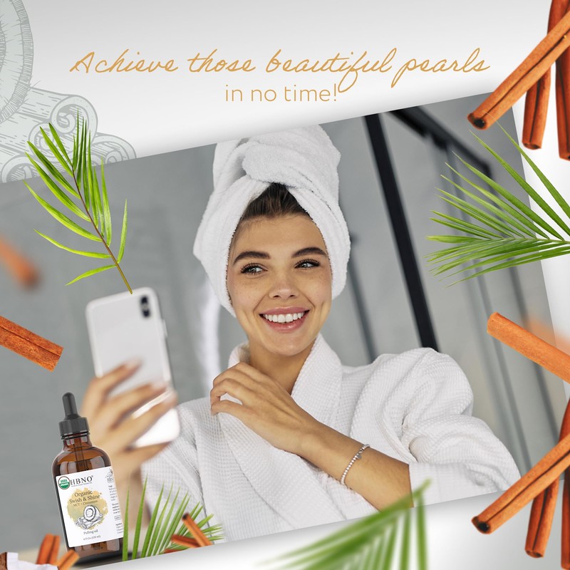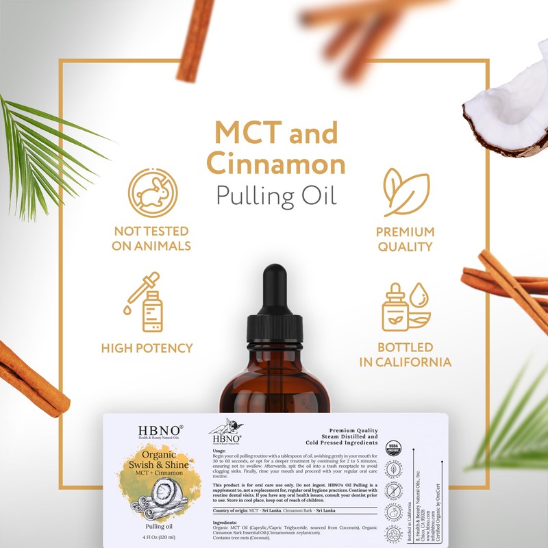 HBNO Swish & Shine MCT & cinnamon pulling oil- Huge 4 oz (120ml) Value Size - Ideal for everyday use as a mouth freshener