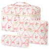 HBselect 3 PCS Quilted Makeup Bag, Cotton Large Travel Makeup Bag, Cute Floral Coquette Make up Bag Cosmetic Bag Toiletry Bag for Women Girls