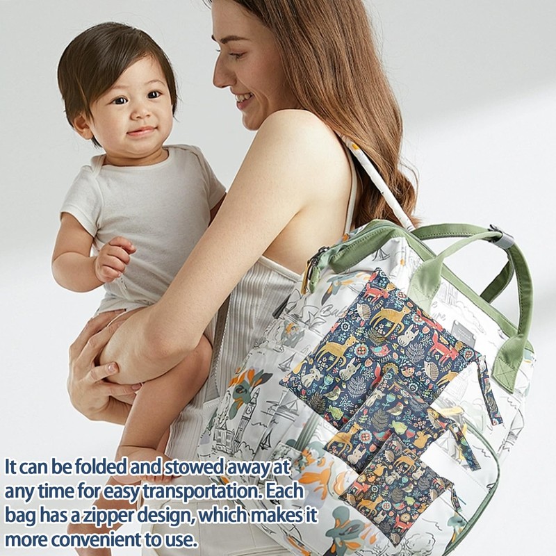 - Lightweight and folded: printed with different cute colourful cartoon patterns. The soft fabric can be folded when not in use and stored to save space. Fashionable, reusable and waterproof, high-quality pack of 3 baby cloth nappies wet pack bags ensure a neat and attractive design.