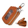 Hbxdeco Double Layer Car Key Case, Leather Zipper Car Key Fob Holder Bag, Vehicle Smart Keys Protector, Keychain Accessories (Brown, Double Layer)