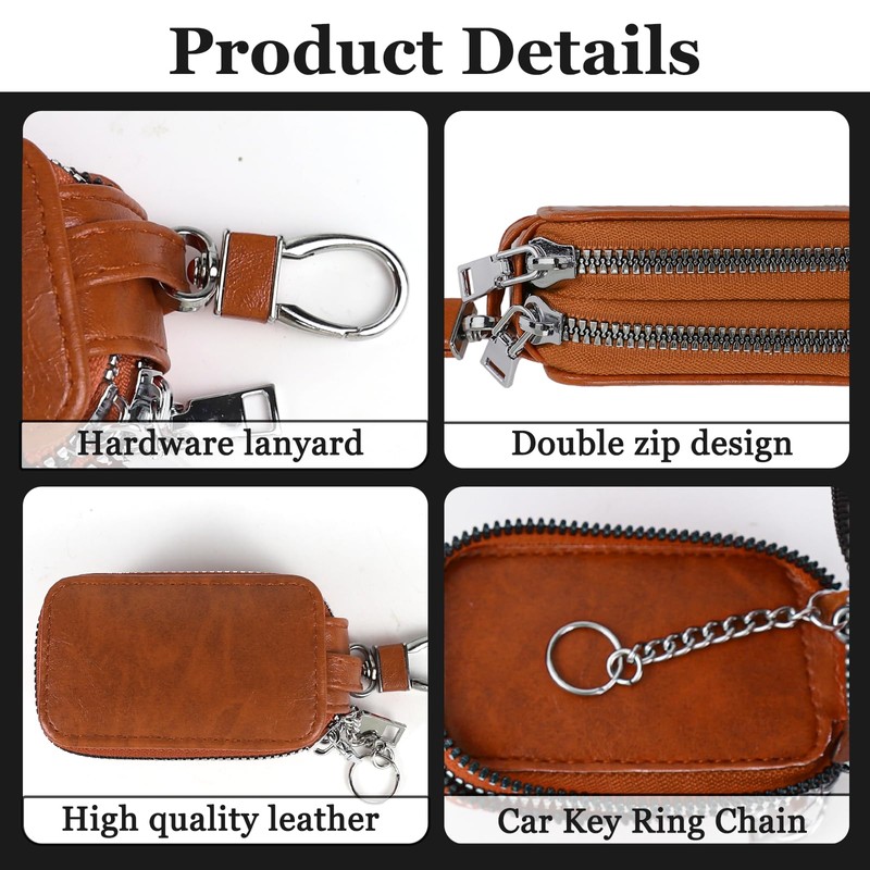 - 【Double Layer Design】: This key case has a double-layer design that offers additional storage space. With it, you can store your car remote control key along with other metal keys, like home or office keys, all in one place. The metal zippers are very smooth, with convenient opening and closing, easy to use.