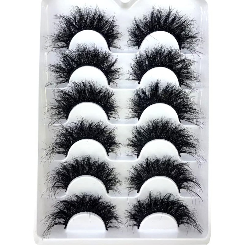 HBZGTLAD 6 Pairs False Eyelashes Cat-Eye Fluffy Faux Mink Lashes 8D Wispy Lashes Dramatic Long Thick Volume Fake Eye Lash(SR-01)
