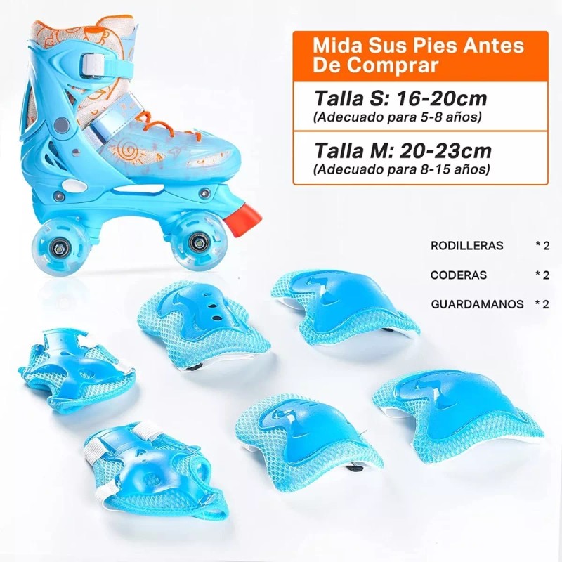 Tamaños ajustables: Los patines en paralelo se pueden ajustar a diferentes tamaños a medida que crecen los pies de los niños.Ajuste fácil y rápido con un botón. Tamaños: S (16-20 cm), M (20-23 cm), Verifique en de la tabla de tallas para que coincida con el tamaño exacto y obtener un ajuste cómodo. (Debe confirmar el tamaño antes de realizar el pedido)