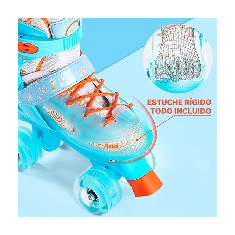 HC Life Patines Ajustables 4ruedas Transparentes Luz Equip Seguridad