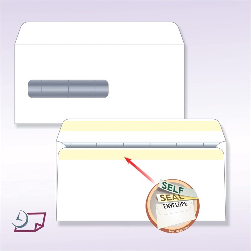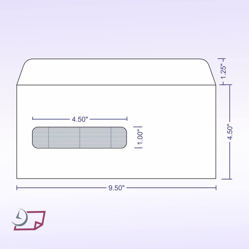 - White envelope with a 4-1/2 x 1-1/8" window on the right side.