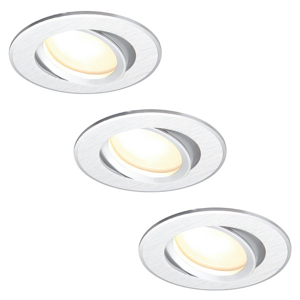HCFEI Set of 3 LED Recessed Spotlights Flat DIM 120° 230 V 3 W Warm White 3000 K Installation Hole 68-75 mm Brushed Silver Swivelling Installation Depth 25 mm