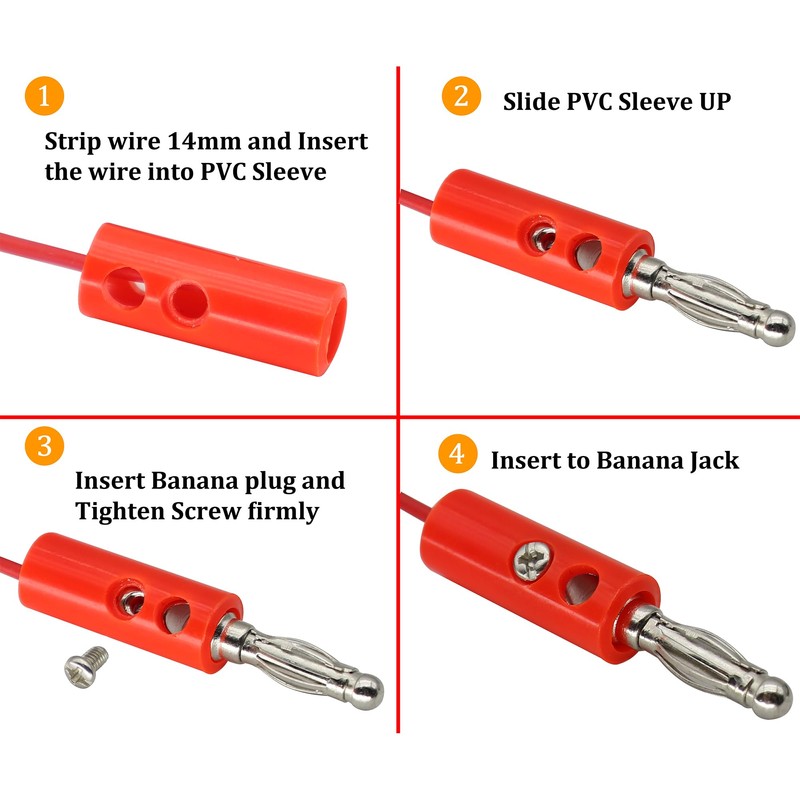 - [Application field]: This cable is a DC 5.5mm x 2.5mm male to 4mm Banana Plug connectorTest Leads used for all electrical and electronic applications in labs, schools, automotive, home and industry.