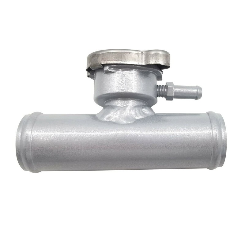 HCHCSPEED 35mm Aluminum Inline Coolant Upper Radiator Filler Neck Hose Connector With Cap Universal Silver