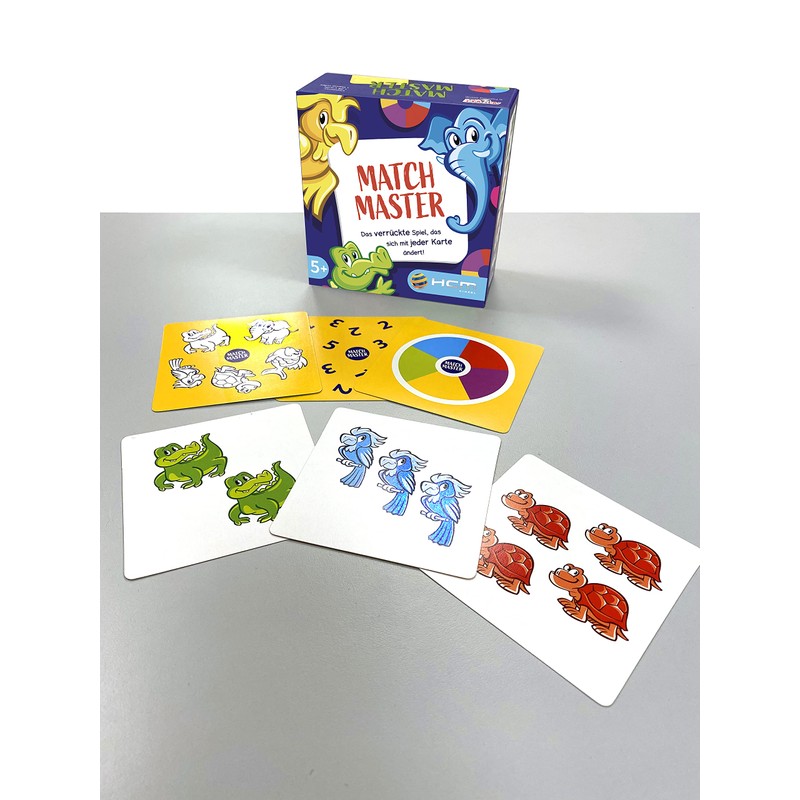 HCM Kinzel 55163 Match Master Card Game Reaction, Speed & Attention with Animals, Colours & Numbers for 2-6 Players from 5 Years, 55163, Multicoloured, S