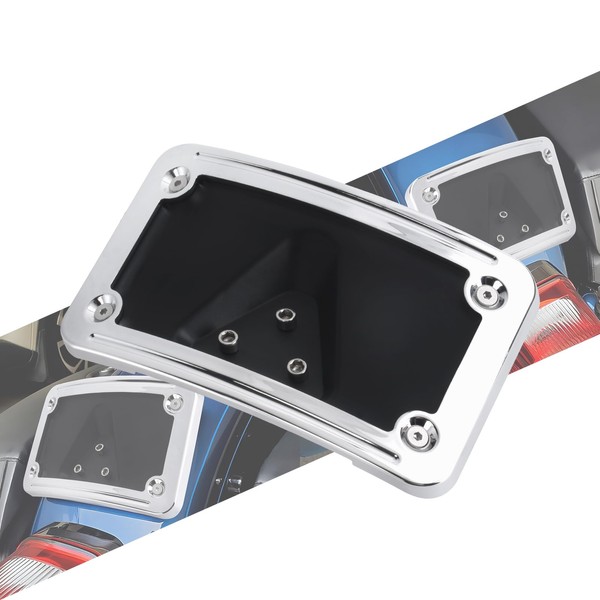 HCmotorku Curved Laydown License Plate Mount Frame Compatible with Harley 3 Hole Rear Fender Mount Replacement for 3148 (Chrome)