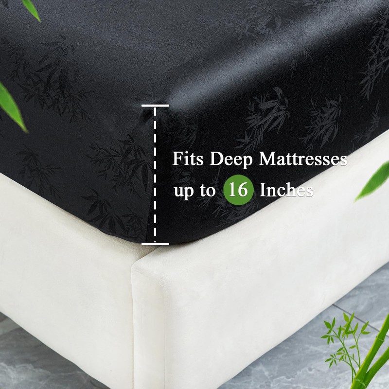 - 【100% Viscose from Bamboo Fabric】The secret to the exceptional quality of this fitted sheet and pillowcase set lies in its 400 thread count viscose from bamboo fabric. This luxurious material offers a silky, cool-to-the-touch feel that is incredibly breathable and soft. Paired with the intricate jacquard weaving technology, the result is a refined, elegant pattern that adds a touch of sophistication to your bedroom décor.