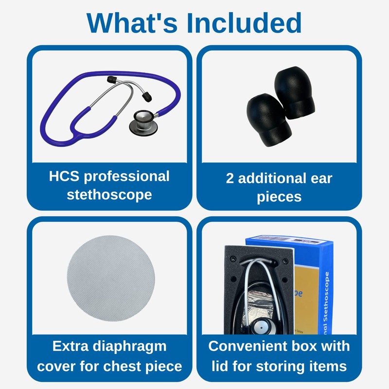 HCS Stethoscope - Classic Lightweight Design - 360° Dual Head Chest Piece - Economical Stethoscopes for Nurses, Students, Home Use - Doctor, Vet Tech and Nursing School Essentials, Blue Stethoscope