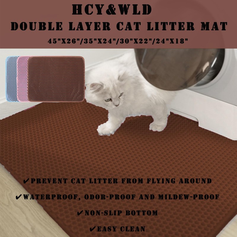 HCY&WLD Cat Litter Mat, Honeycomb Double Layer Cat Litter Trapping Mat, Waterproof Urine Proof Non-Slip, Scatter Control, Less Waste, Easier to Clean (Brown, 24" X 18")