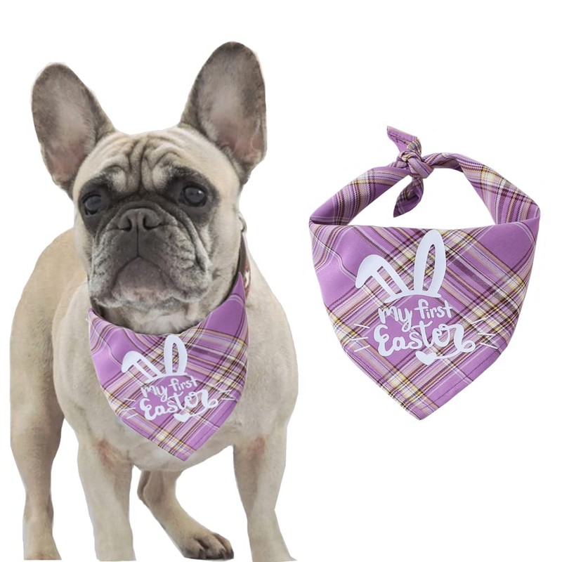 - Merry Easter: the scarf has an Easter pattern, with classic check pattern and "My First Easter" on the theme "Happy Easter". You can decorate your pet with this Easter cloth. You will spend a good time.