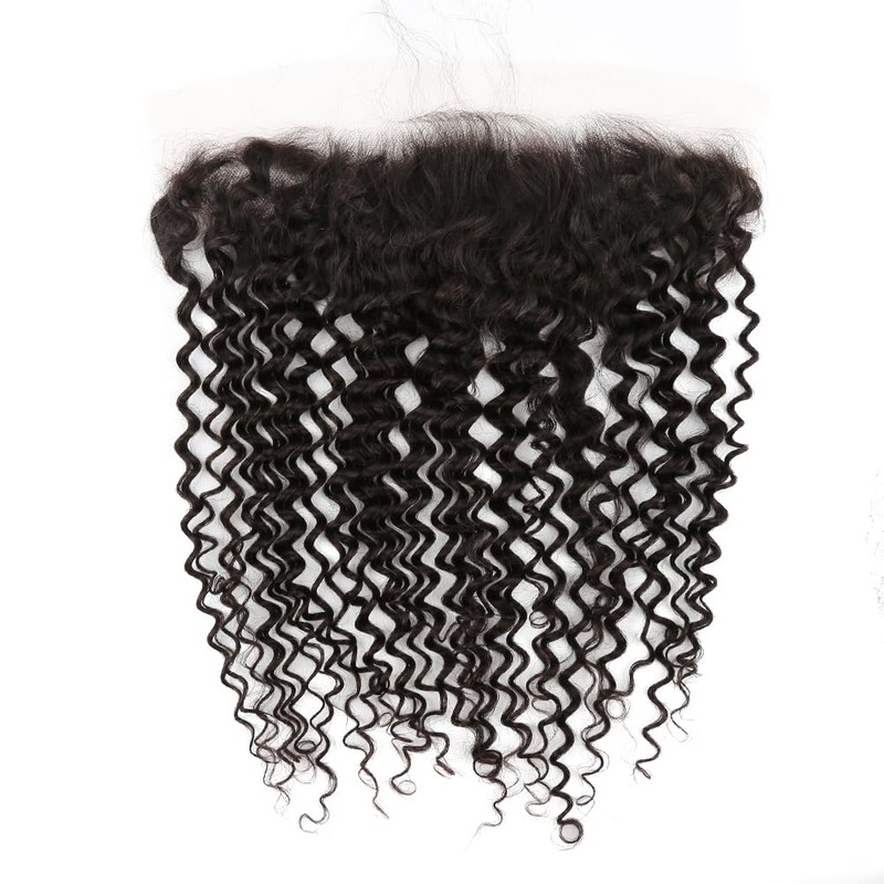 HD Lace Frontal 13 * 4"Ear to Ear Frontal Hair Weaves Pre Plucked Human Hair Full Lace Closure With Baby Hair Natural Color Brazilian Wet and Wavy Curl 14"