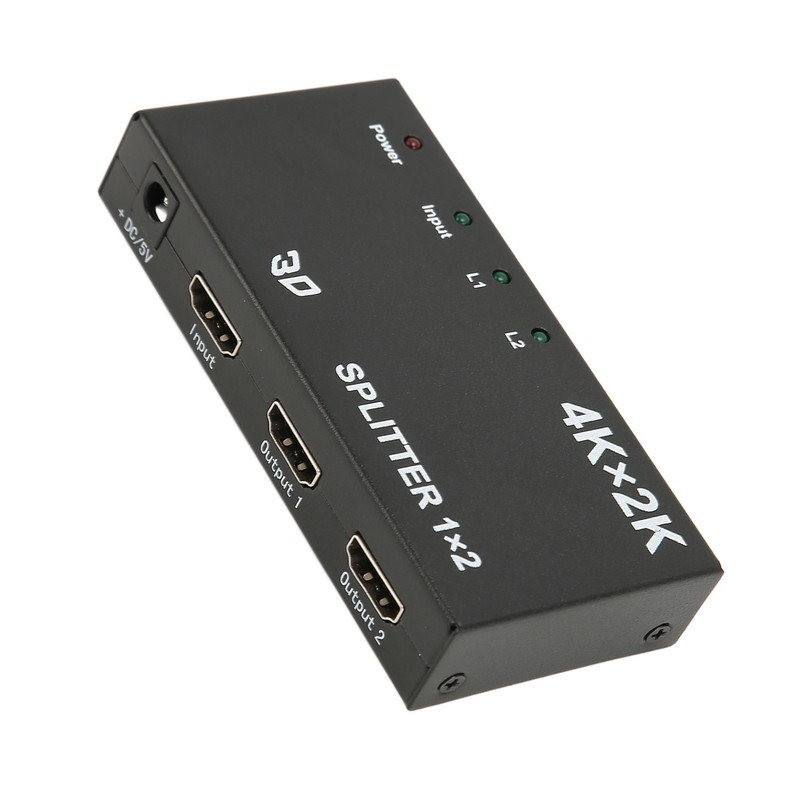 HD Multimedia Interface Splitter 1 in 2 Out 4K 2K Duplicate Mirror Screen Video Switcher with AC Adapter for TV 100‑240V US Plug