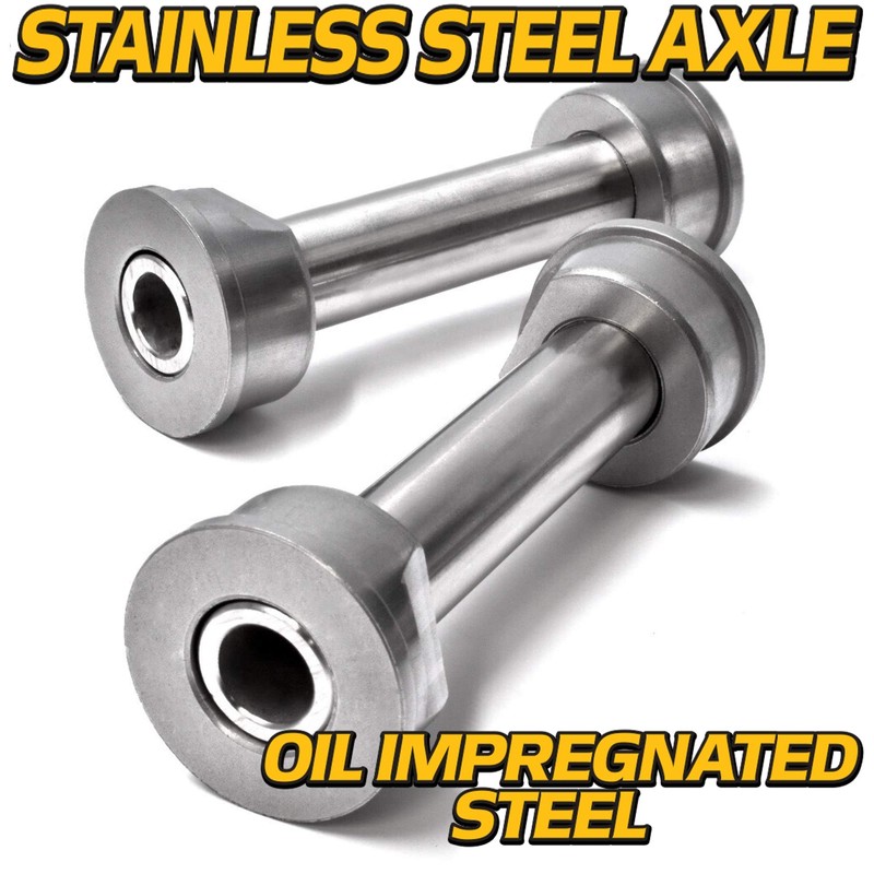 - SMOOTH: Oil Impregnated Sintered Steel Bushings Last Longer and Run Smoother. Stainless Steel Axles Will Not Score as Easily as the Factory Axle. Scoring and Rust Creates Drag, Making Stainless Steel a Smoother Option.
