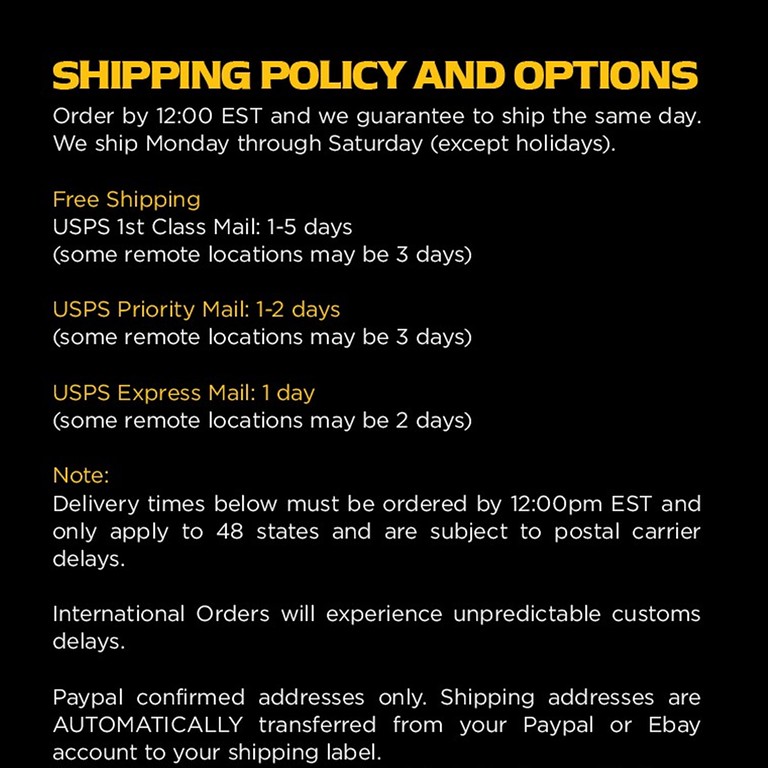• We process and ship orders Monday through Friday, excluding holidays.