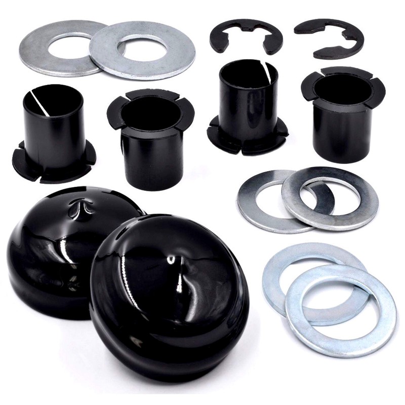 • 1 KIT INCLUDES: (4) Bushings, (2) Caps, (6) Washers, (2) E-Clips