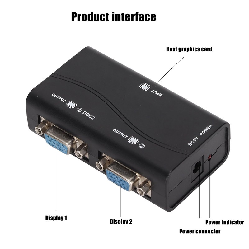 - 1 In 2 Out: VGA high definition splitter, 1 in 2 out, a host can be connected to 2 monitors with VGA interface, display the same picture, 1080P high definition vision.