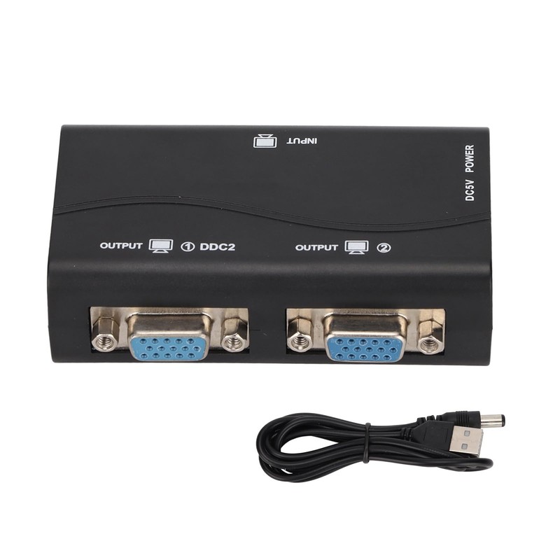 HD VGA Splitter,1 in 2 Out 250MHz USB 1920x1440 1080P Video Splitter, for Screen Duplication
