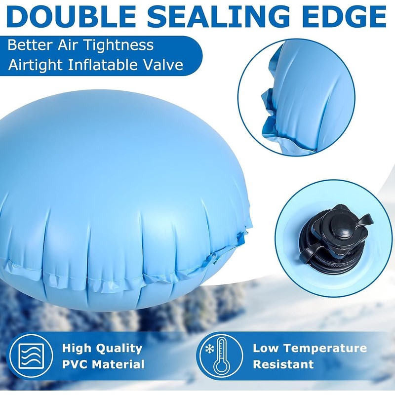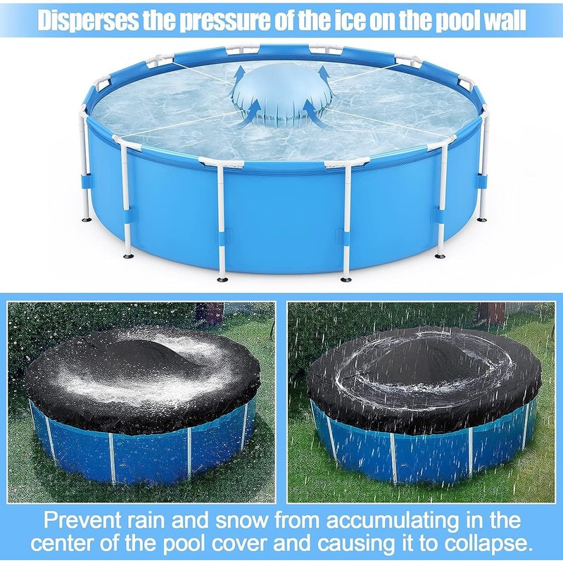 • Protect pool and patio furniture: you will receive 1 x flat inflatable pool cushion with a size of 1.2 m and 1 x 15 m rope. Our pool cushions help you distribute the ice and reduce pressure on the pool walls. They can also be placed on a patio table. They avoid covers and extend the life of patio furniture covers. When inflating the pool cushion, it is recommended to inflate to 70%, which leaves space for the expanding ice cubes and avoiding damage to the pool.
