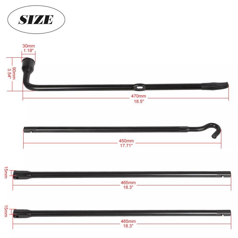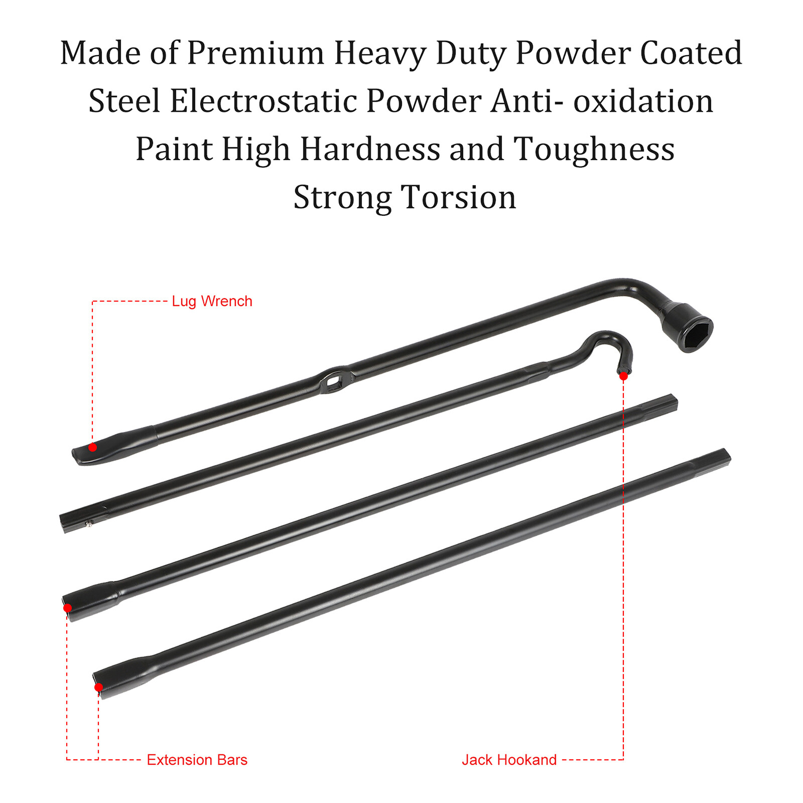 1 x Lug Wrench Tool 1 x jack hook extension 2 x Extension Segments 1 x Convenient Storage Case