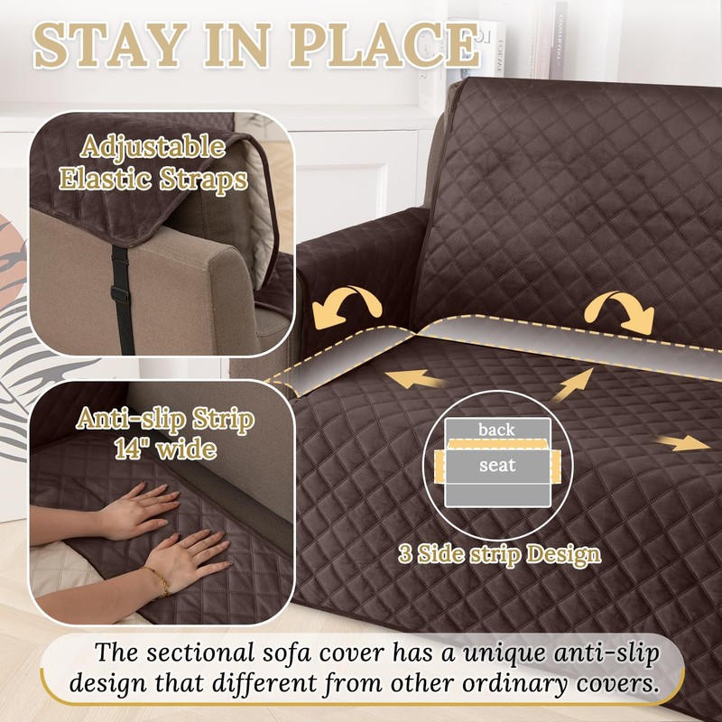 3. Anti-slip u shaped sectional couch covers: The sofa cover for l shaped sofa features non-slip strip, adjustable straps on the backrest of waterproof sectional couch cover for pets, ensure the corner couch cover l shape stay in place on leather sofas.