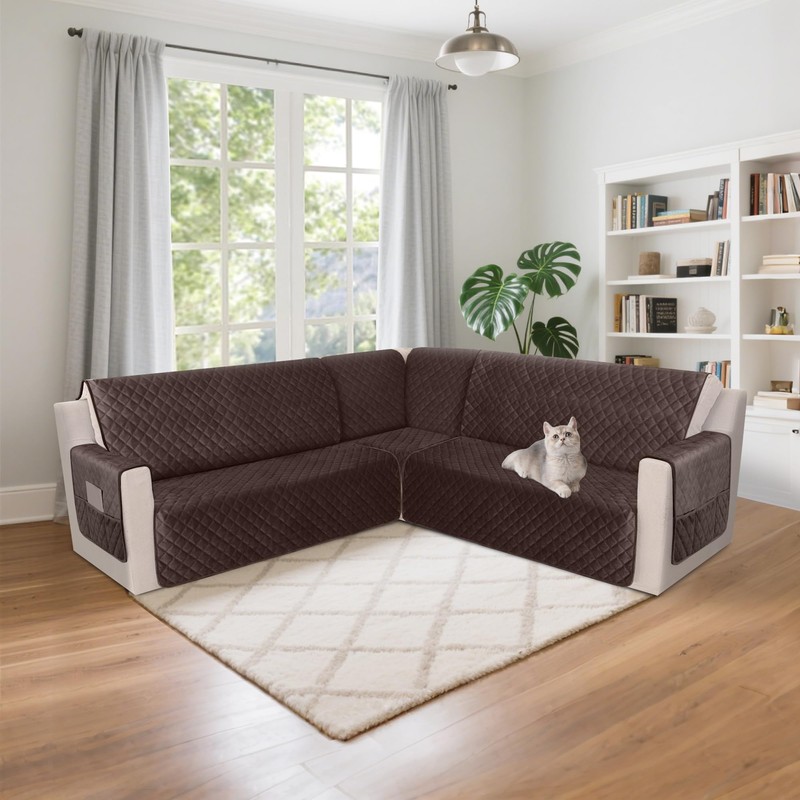 1. 1OO% Waterproof l shaped couch cover for dogs: the premium velvet couch cover u shaped sectional is crafted from 4-layer quilted waterproof fabric, protect your sofa from water with our sectional cover.